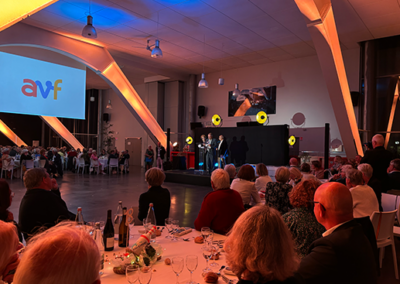 Pour célébrer les 40 ans de l’Accueil des Villes Françaises (AVF – Pornichet), nous avons conçu et orchestré un événement sur mesure, transformant les 850m² du Grand Hall des Paris de l’hippodrome de Pornichet en un espace chaleureux et immersif. De la pré-production jusqu’à la mise en scène finale, notre équipe a assuré une exécution fluide et millimétrée, garantissant une soirée mémorable pour les 350 invités.