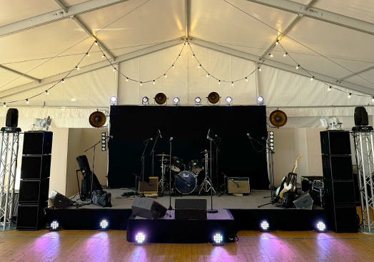 Réalisation d’une scène sur mesure, pensée pour mettre en valeur le concert et dynamiser l’espace festif.