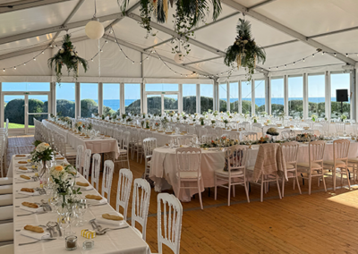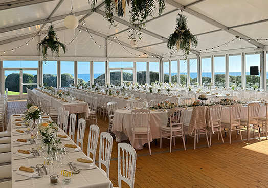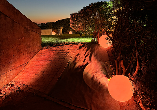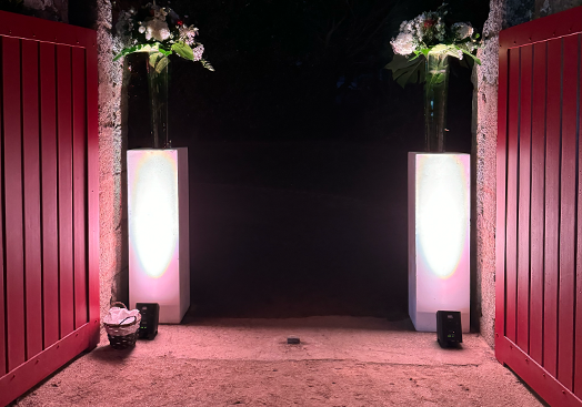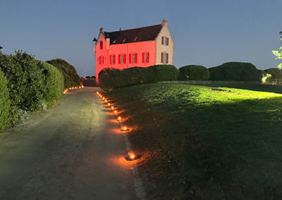 Mise en lumière des extérieurs et de la salle, créant une atmosphère chaleureuse et immersive, sublimant chaque instant de la soirée.
