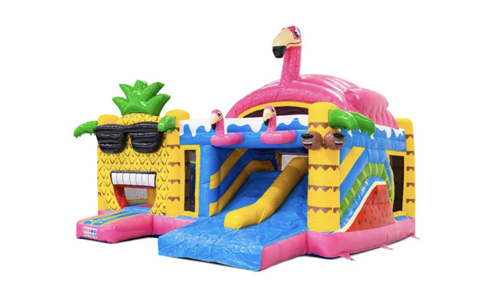 150,00 € HT/jour180,00 € TTC/jourDécouvrez une variante tropicale du Multiplay Double Toboggan: le Hawaii Flamant rose ! L'ananas joyeux et le flamant rose 3D géant vous invitent à découvrir ce qui se passe à l'intérieur. Avec ce château gonflable, vous pouvez escalader, grimper, sauter et glisser ; le plaisir des enfants est donc garanti !