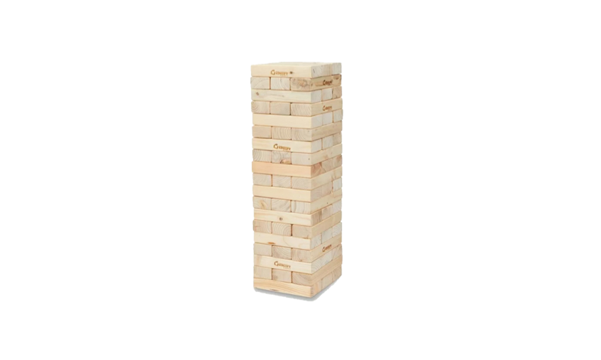 Tour à tour dans le sens des aiguilles d’une montre, chaque joueur enlève une brique quelconque de la tour à l’exception de la rangée supérieure. Ensuite cette brique est reposée au sommet de la tour perpendiculairement au rang précédant. Il faut toujours compléter la rangée supérieure avant d’en commencer une nouvelle. Le dernier joueur qui à déplacé un bloc et l’a reposé sans faire tomber la tour est le grand gagnant de la partie. Le joueur qui a fait écrouler la tour commence la partie suivante.