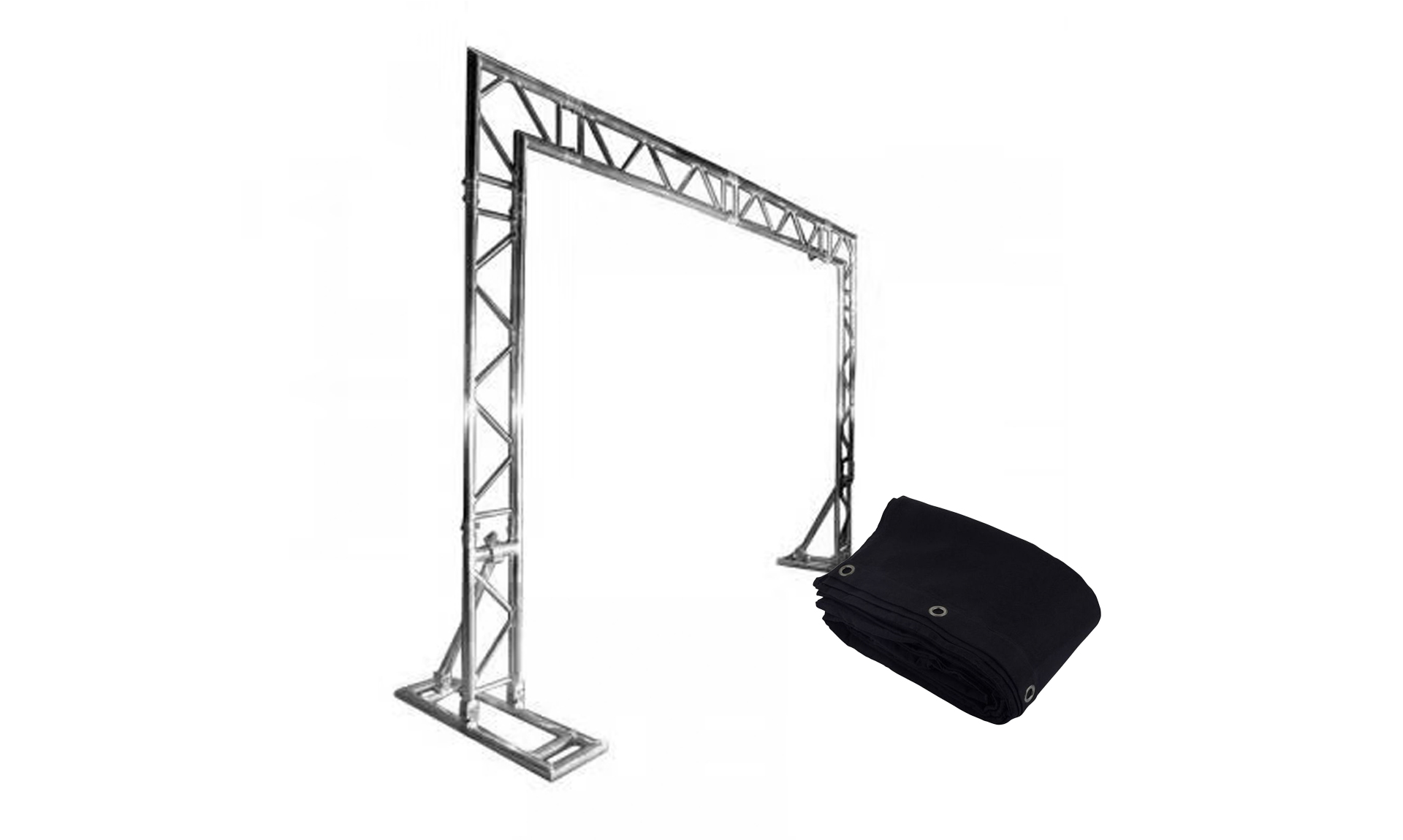 Pack fond de scène noir 5m x 2,5m (structure + rideau)