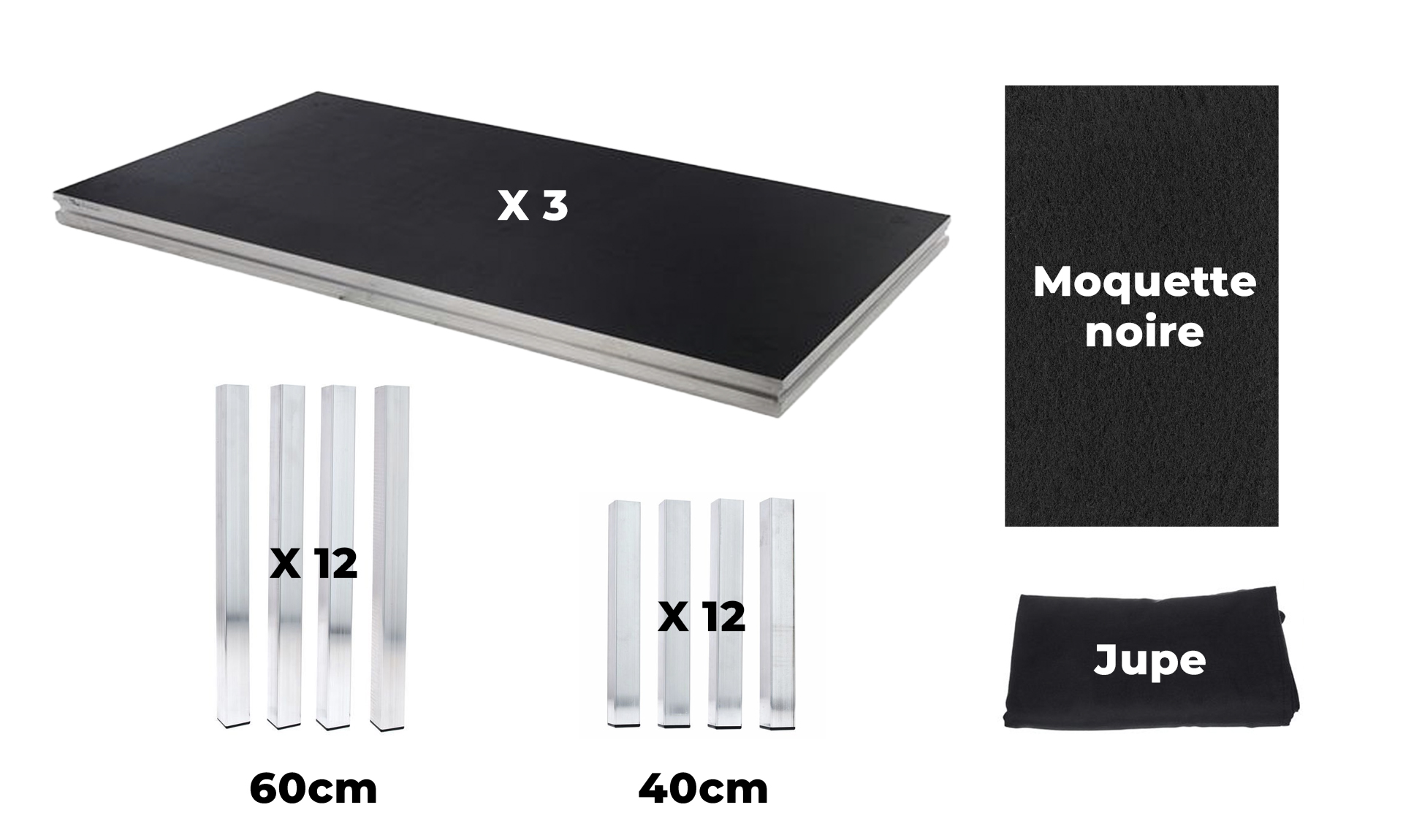 Pack scène 6m2 (3mx2m) avec moquette noire