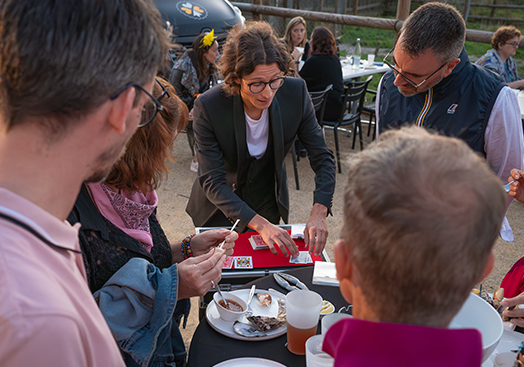L’animation et la convivialité étaient au cœur de cet événement, où chaque détail a été pensé pour offrir aux invités une expérience immersive et festive. À travers une mise en scène soignée créée en collaboration avec l’Éco-Domaine de la Fontaine (en charge de la partie restauration et bar), nous avons pu mettre en place des animations ludiques (jeux en bois, structure gonflable pour se défier entre collègues, magicien qui venait à la rencontre des petits groupes de collaborateurs) et une ambiance lumineuse chaleureuse. Dans un cadre idéal, nous avons pu réaliser une soirée sous le signe du partage et du divertissement.