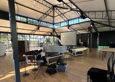 Pour accompagner Habitat 44 dans la réalisation de sa plénière, nous avons mis en place un dispositif technique complet, alliant son, lumière et vidéo. L’Orangerie du Domaine de la Gressière a ainsi été transformée en un espace de conférence moderne et immersif, offrant des conditions optimales pour les échanges et les interventions à distance.