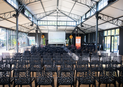 L’ambiance visuelle est essentielle pour créer un cadre engageant. Nous avons conçu un éclairage soigné, mettant en valeur la scène et les intervenants, tout en harmonisant l’espace avec un habillage végétal naturel et raffiné. Une touche esthétique qui a renforcé l’identité et l’atmosphère de l’événement.